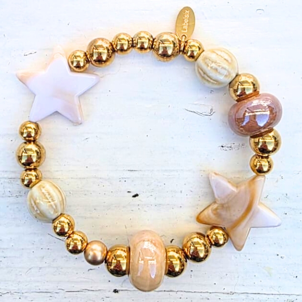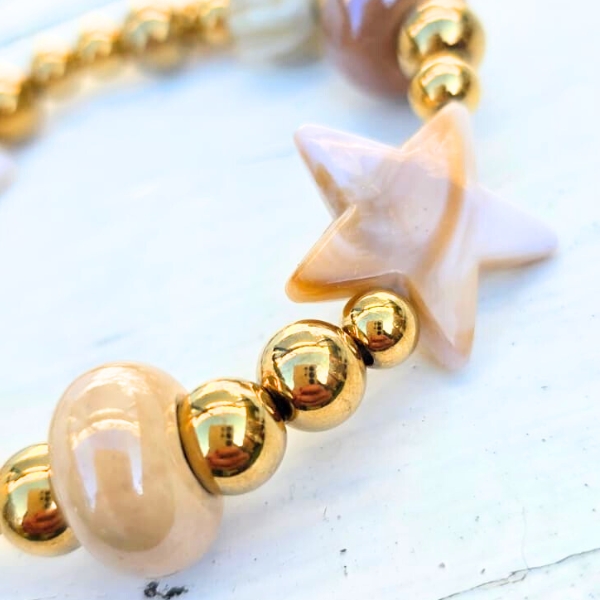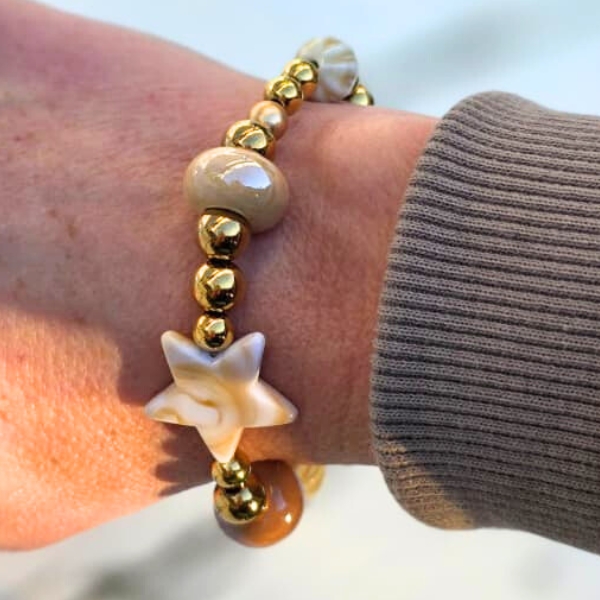 Dankzij de mix van materialen en vormen is de Big Star kralenarmband ideaal om een outfit net dat beetje extra te geven. Draag de armband als eyecatcher of combineer hem moeiteloos met andere armbanden uit onze collectie voor een trendy armbanden stack met een speelse uitstraling.