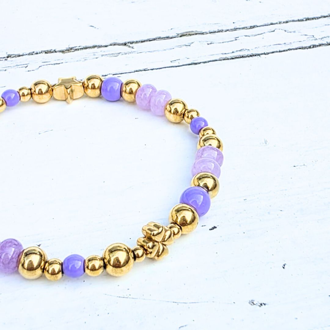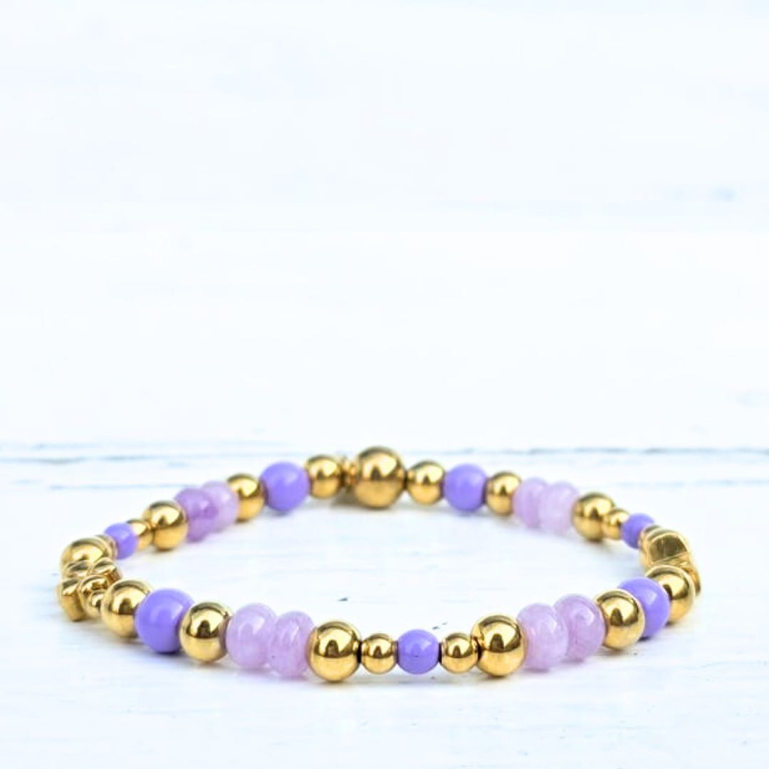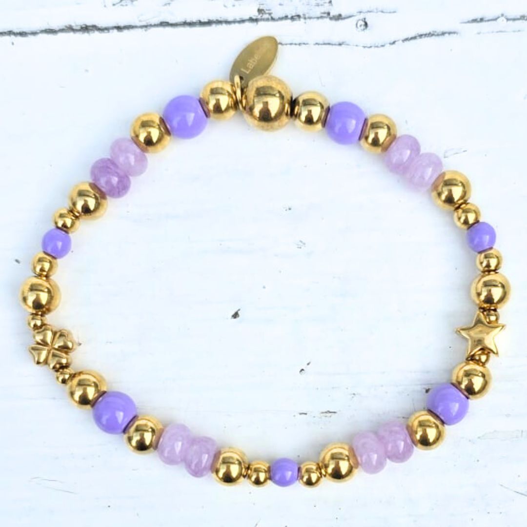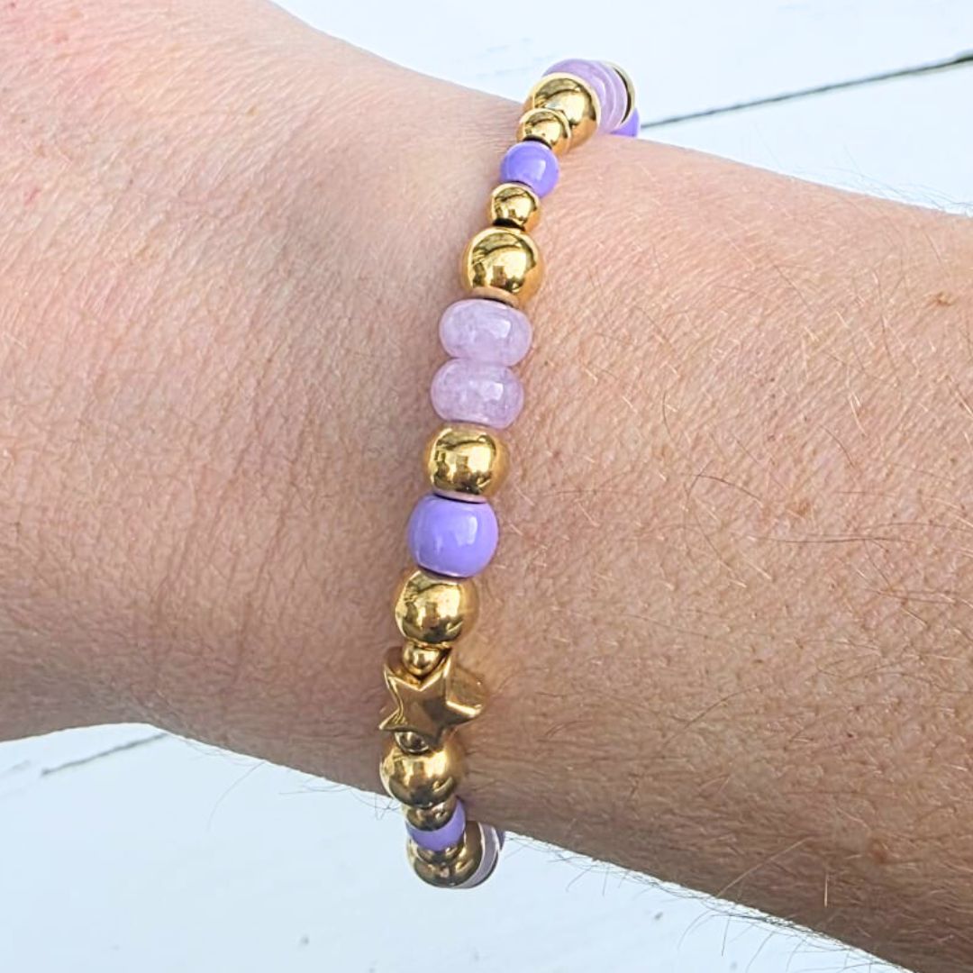 Deze kralenarmband lilac is gemaakt van o.a. 100% waterproof high quality stainless steel kralen gecombineerd met verschillende kralen in verschillende materialen.