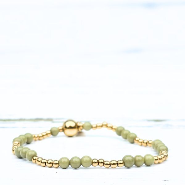 Of je nu houdt van subtiel of juist van een opvallend accent: deze armband past moeiteloos bij elke outfit. De groene tint straalt rust en balans uit, terwijl het goud zorgt voor een vleugje luxe.