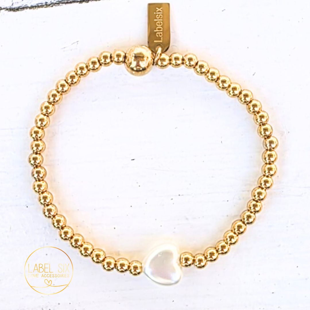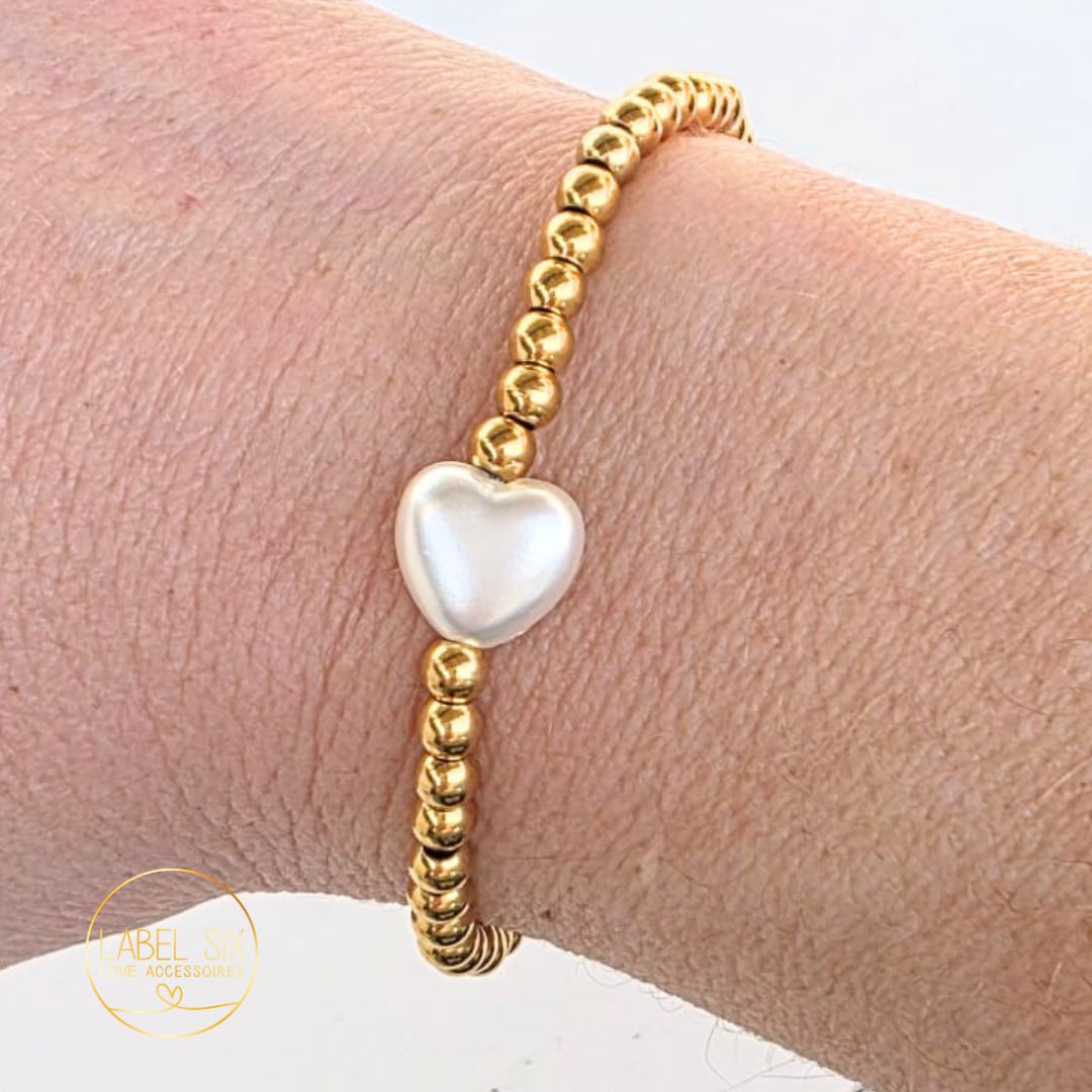 Kralenarmband met parel hart is gemaakt van 100% waterproof high quality stainless steel kralen met in het midden een parel in de vorm van een hart.