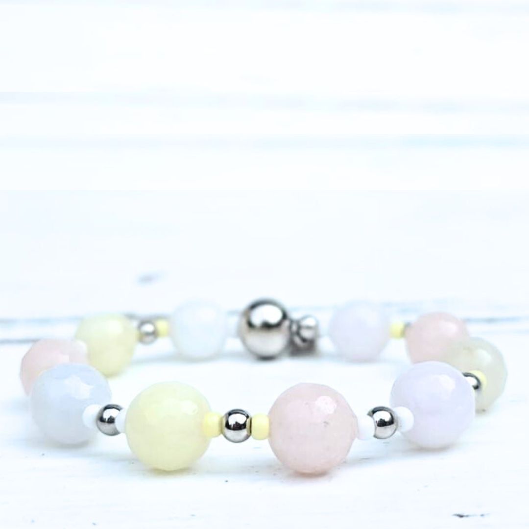 Deze kralenarmband s-line pastel dream is gemaakt van 100% waterproof high quality stainless steel kralen in combinatie met pastelkleurige 10mm kralen.