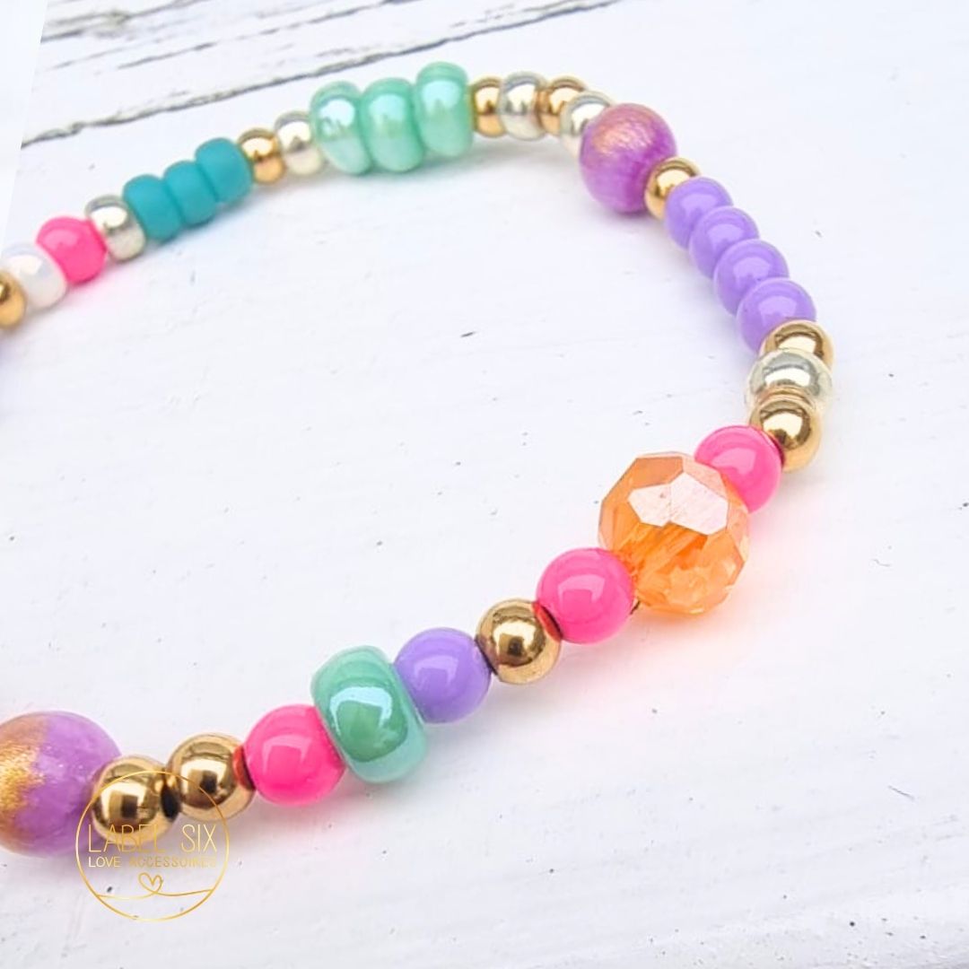 Combineer deze kleurrijke kralenarmband met een mooie basis gouden armbanden of kies juist voor kleurrijke zomerse armbanden.