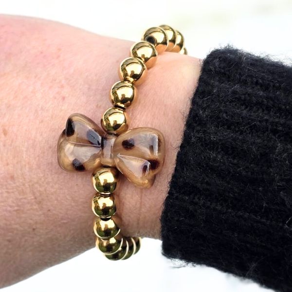 Zoek je een trendgevoelige kralenarmband met leopard detail? Dan is de kralenarmband strik donkerbruin een absolute must-have.