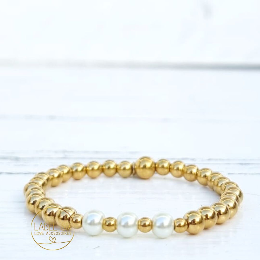Deze kralenarmband triple pearl is gemaakt van 6mm glaskralen gecombineerd met high quality stainless steel kralen.