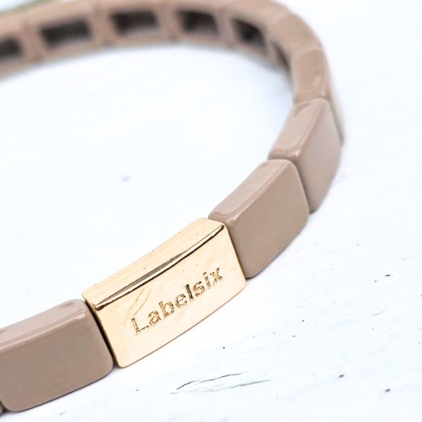 Label Six armband emaille taupe – Prachtig taupe kleurige armband voor de Ultieme Herfstlook