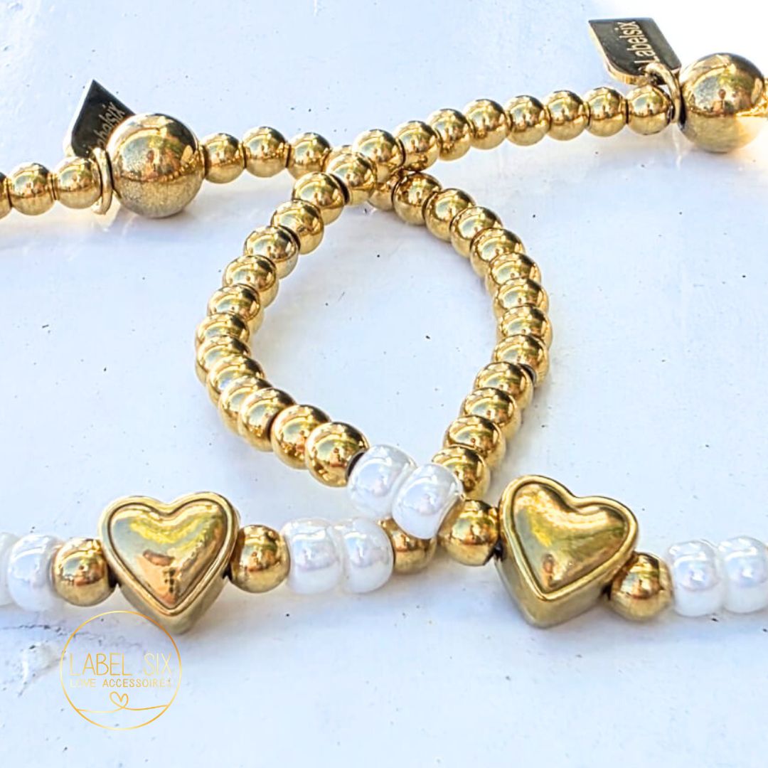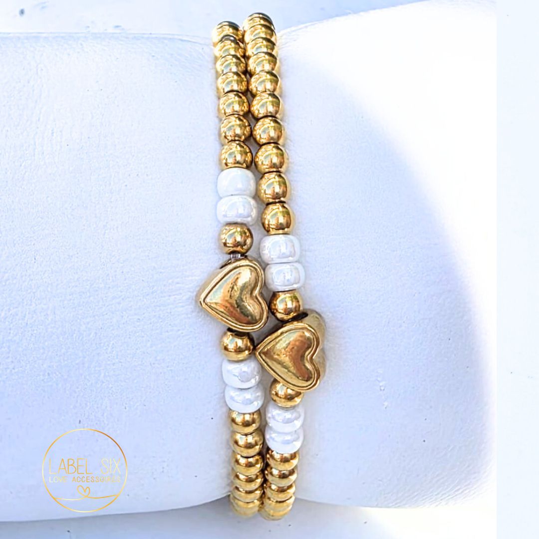 Moeder dochter armband with love, gemaakt van 100% Waterproof stainless in combinatie met een stainless steel hartjes, mooie stijlvolle armband om te combineren of los te dragen. Prijs is per set. [ONLY ONLINE]