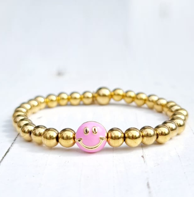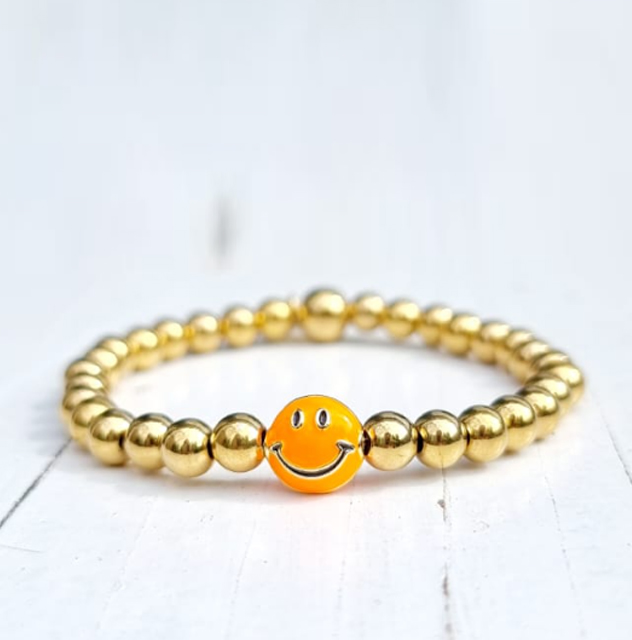 Vrolijke smiley armbanden gemaakt van 100% waterproof stainless steel kralen. Verkrijgbaar in 5 kleuren maar ook in zwart, wit of grijs, klik hier voor de smiley armbanden in zwart, grijs, creme of wit!