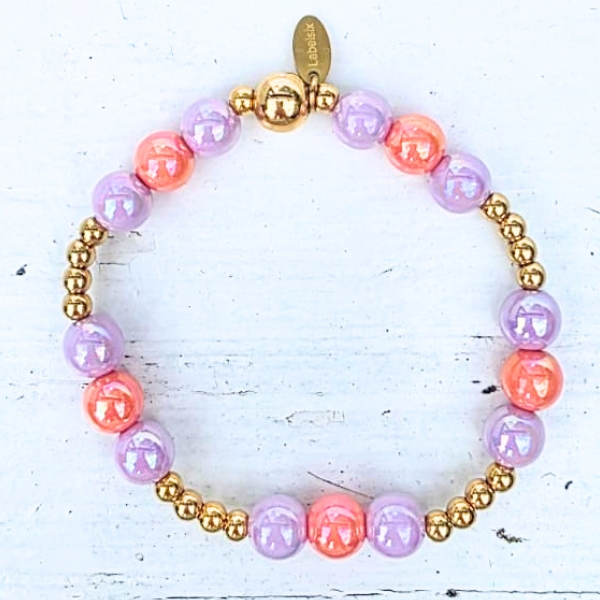 Op zoek naar een subtiele kralenarmband in roze en lila? De Soft Blush armband van Label Six combineert parelmoerachtige kralen met stainless steel voor een elegante en tijdloze uitstraling. Perfect voor elke gelegenheid.